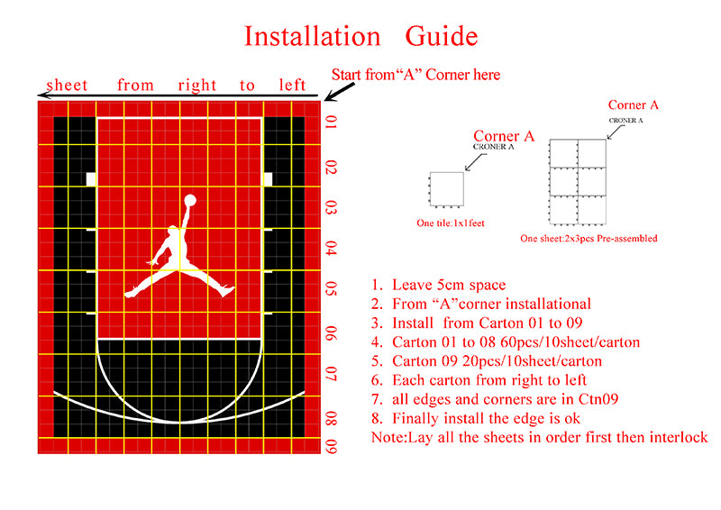 The installation guide of 20x25 feet basketball court: